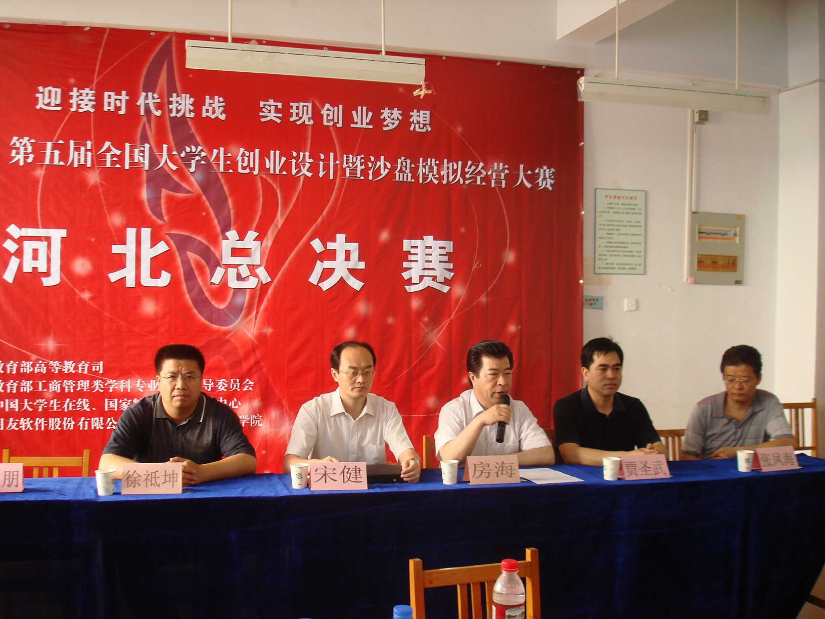 图为我校承办“用友杯”第五届全国大学生创业设计暨沙盘模拟经营大赛开幕式,我校房海副校长、我院贾圣武院长、徐祗坤副院长及用友公司领导出席了开幕式。