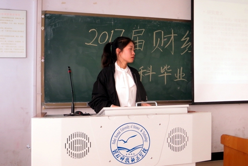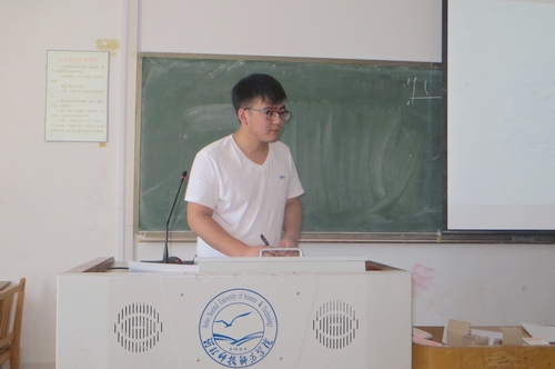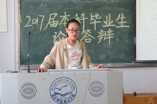 本届本科毕业生的毕业论文答辩分为三个环节。首先是毕业生通过幻灯片介绍本人论文,其次是答辩组教师对论文提出意见并提问,最后是毕业生当场作答。