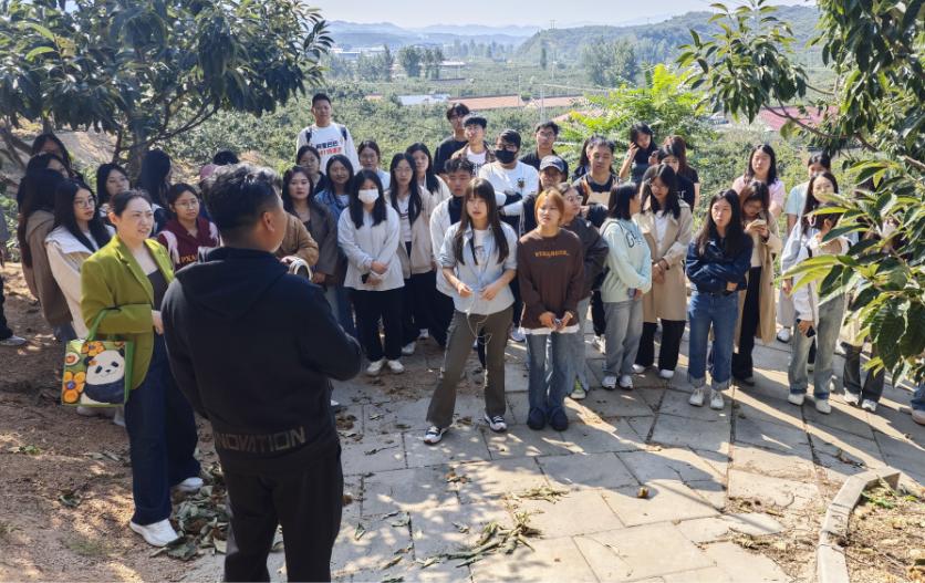 在板栗种植园现场,肖营子村农村电商带头人满立峰为同学们分享了做农村电商、淘宝店铺直播销售的实践经验。