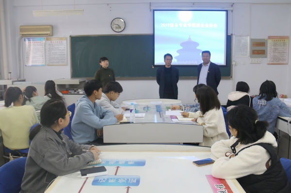 20191031日下午,学院在A703教室召开2019级各专业班级学习委员培训会议。学院党委副书记副院长李宝文、副院长徐祗坤参加了会议。会议由学院教学秘书郑慧老师主持。