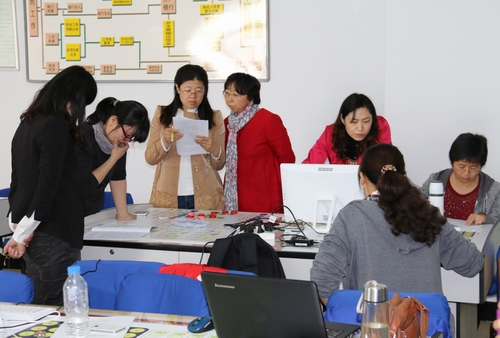 培训中,成都杰科力科技有限公司培训师为教师们系统讲授了经济学、商业银行、国际贸易3门课程的沙盘实验操作,并以经济学沙盘实验为重点进行了模拟推演。教师们积极参与其中,学习操作,交流心得,兴趣浓厚。