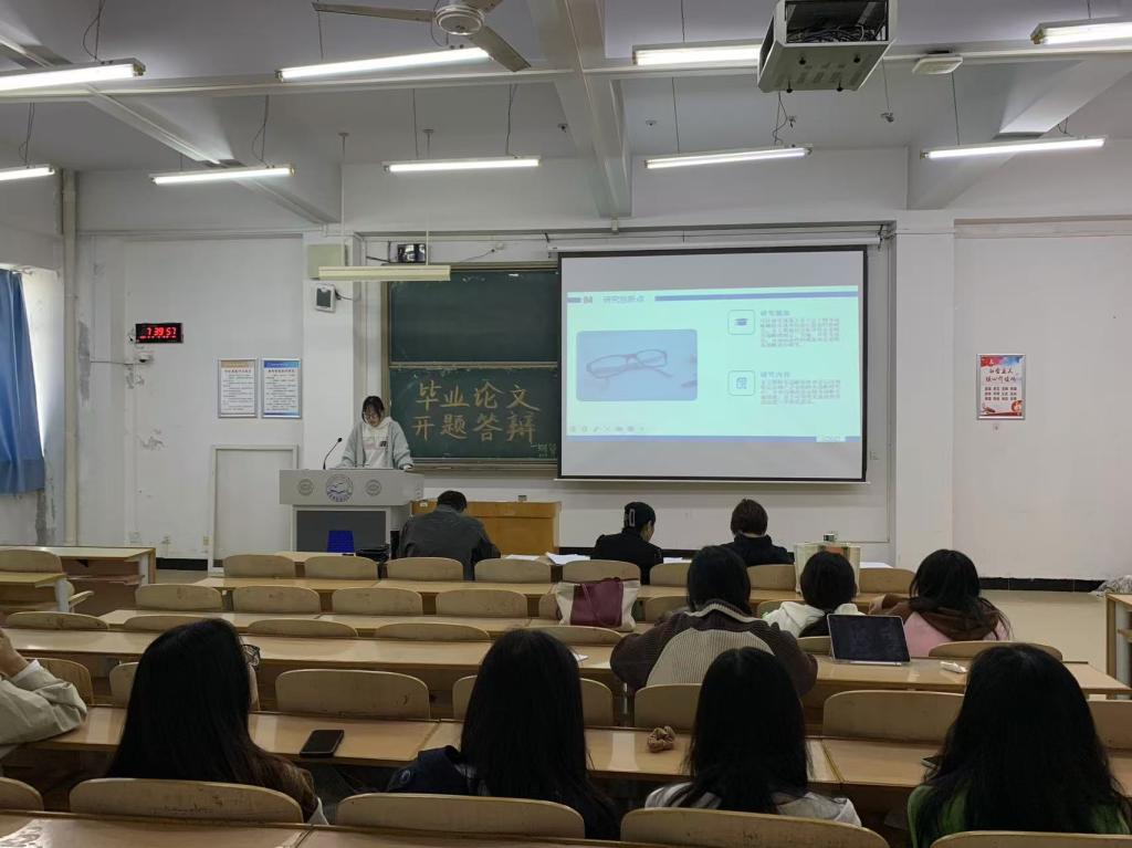 答辩会上,学生从毕业论文的研究意义、研究现状、主要研究内容、研究方案及工作计划等方面进行汇报。随后,答辩老师针对开题报告中存在的问题,与学生进行交流并提出修改建议。答辩后学生将和指导教师沟通进一步修改完善开题报告。