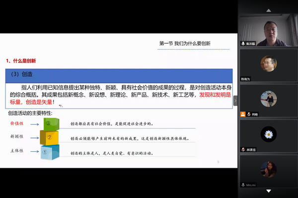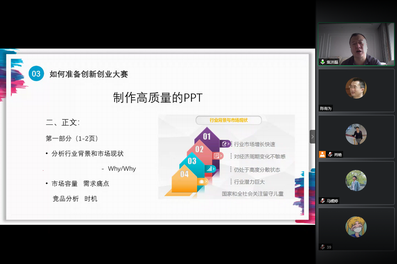 2020727日,学院使用腾讯会议软件在线上召开创新创业报告会,数学与信息科技学院焦洪磊老师应邀作题为“勇立时代潮头敢闯会创 扎根中国大地书写人生华章”的报告。学院党委副书记、副院长王志安携180名师生与会。