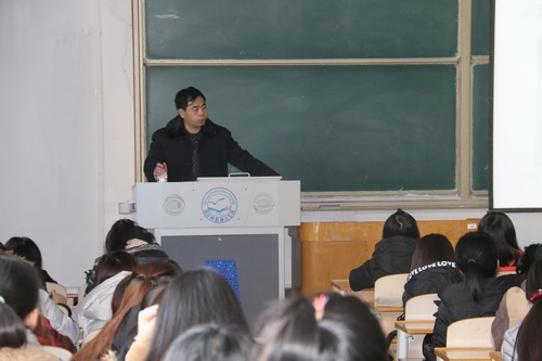 2016年11月24日下午,学院召开了“增强规矩意识,助力转型发展”宣讲会。校思想政治理论教育宣讲团成员、文法学院副院长赵福江教授以“把纪律规矩挺在前面”为题进行了宣讲。学院教职工和学生代表120余人聆听了宣讲。