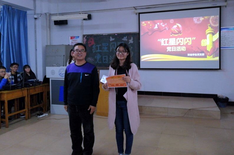 活动中,支部党员、积极分子代表以专业班为单位进行了党的知识竞赛。比赛形式分为必答题和抢答题两个环节。在必答题环节,选手们准备充分,答题流利准确,现场气氛活跃;在抢答题环节,选手们争分夺秒,竞相作答,现场气氛热烈。期间,大家还表演了自编自演的文艺节目。经过比拼,财务会计教育专业17030405班代表队获得一等奖,财务会计教育专业160304班代表队获得二等奖,财务会计教育专业160102班代表队和财务会计教育专业170102班代表队获得三等奖。与会领导老师现场给获奖代表队颁奖以资鼓励。