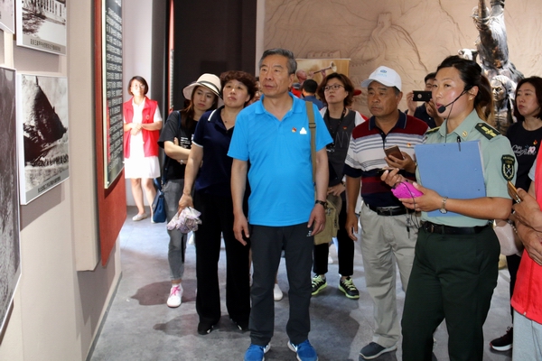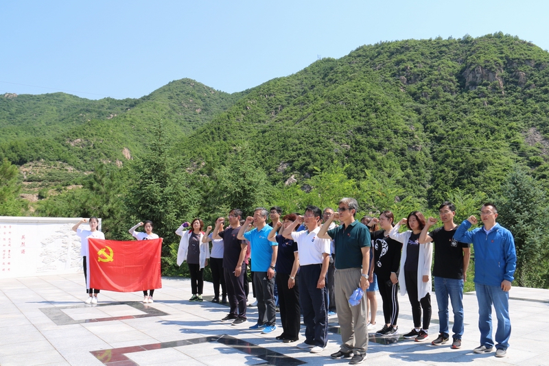 图为师生党员在抗日纪念馆前合影