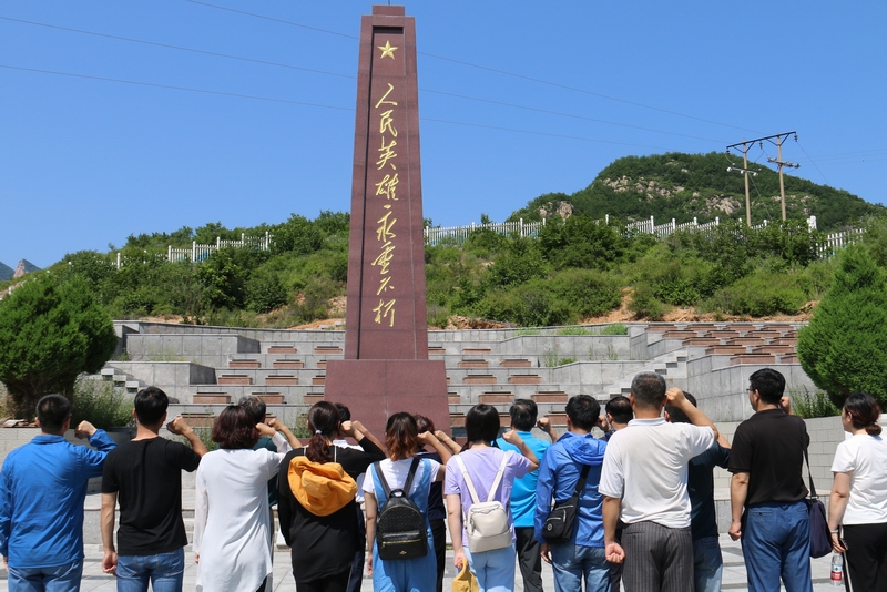 图为师生党员在烈士陵园前合影