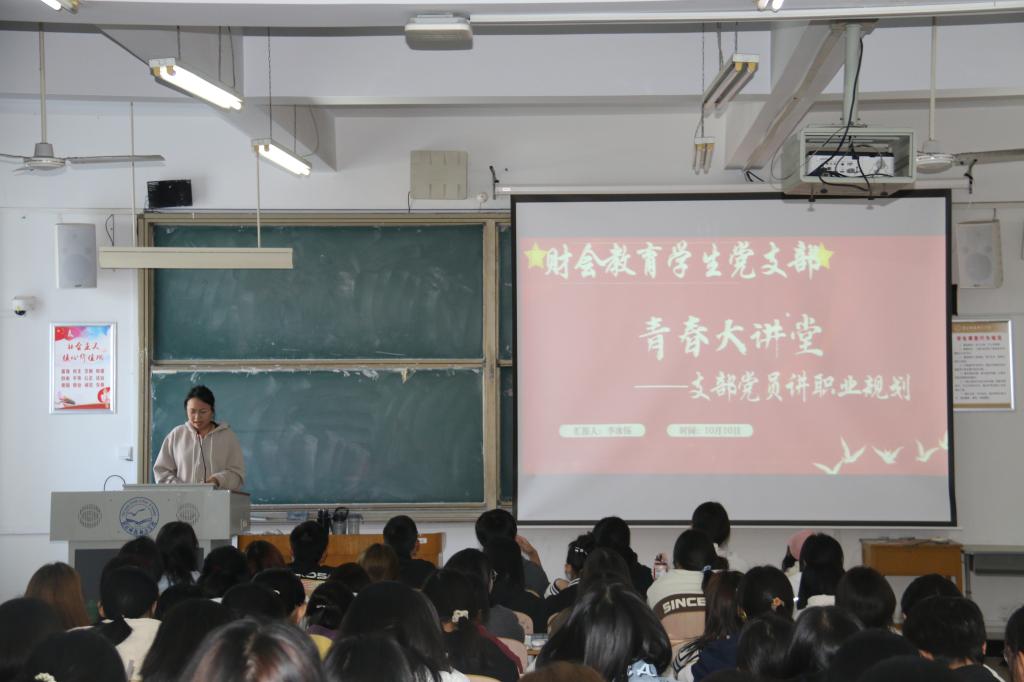 金沙检测线路js95财会教育党支部和积极分子深入‘青春大讲堂’开展支部党员讲职业规划活动于2024年10月10日在A305成功举办,主讲人为22级财统学生李冰钰。此次活动旨在分享入选党员的经验,使同学们对大学未来的四年有更详细的规划和明确的目标,学生党支部能够以此培养更多的优秀后备成员。