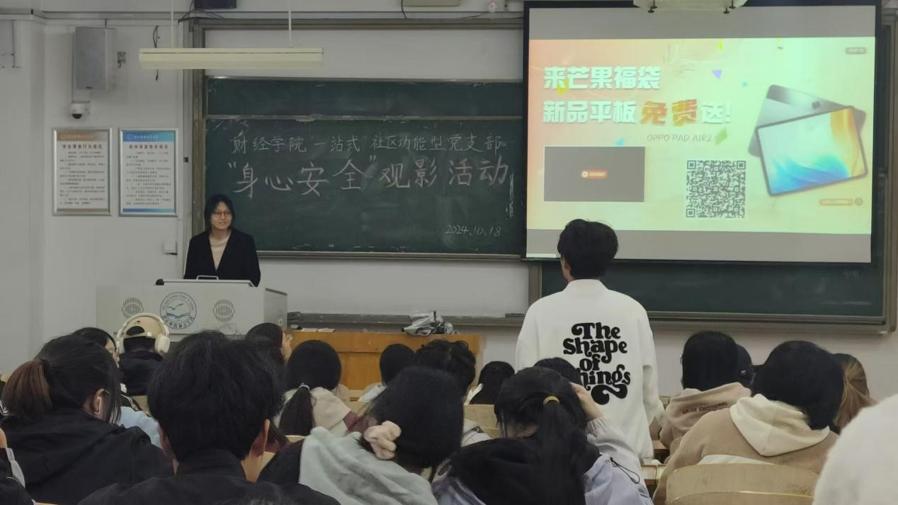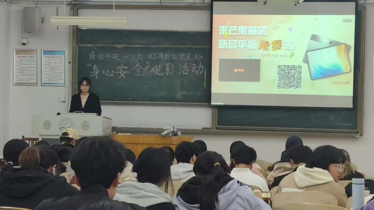 为了加强对青年学生的身心安全教育,增强安全意识,金沙检测线路js95“一站式”社区功能型党支部于2024年10月18日在逸夫楼A201和A207教室举办了“关注身心安全,共创和谐校园”主题的观影活动。