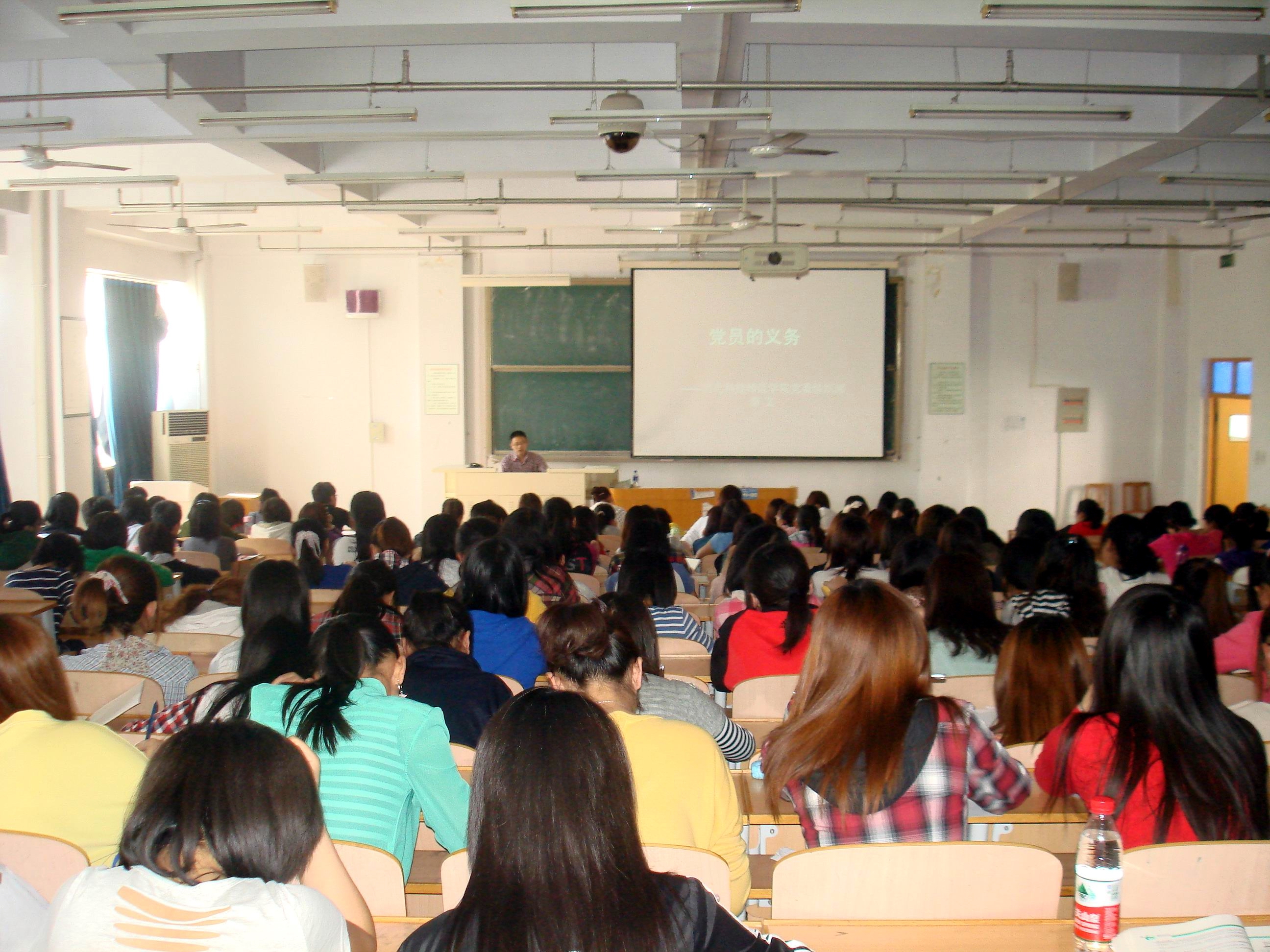 2012年5月18日,学校党委组织部秦文老师应邀给我院入党积极分子上党课。我院第11期入党积极分子培训班全体学员共170人参加了党课。