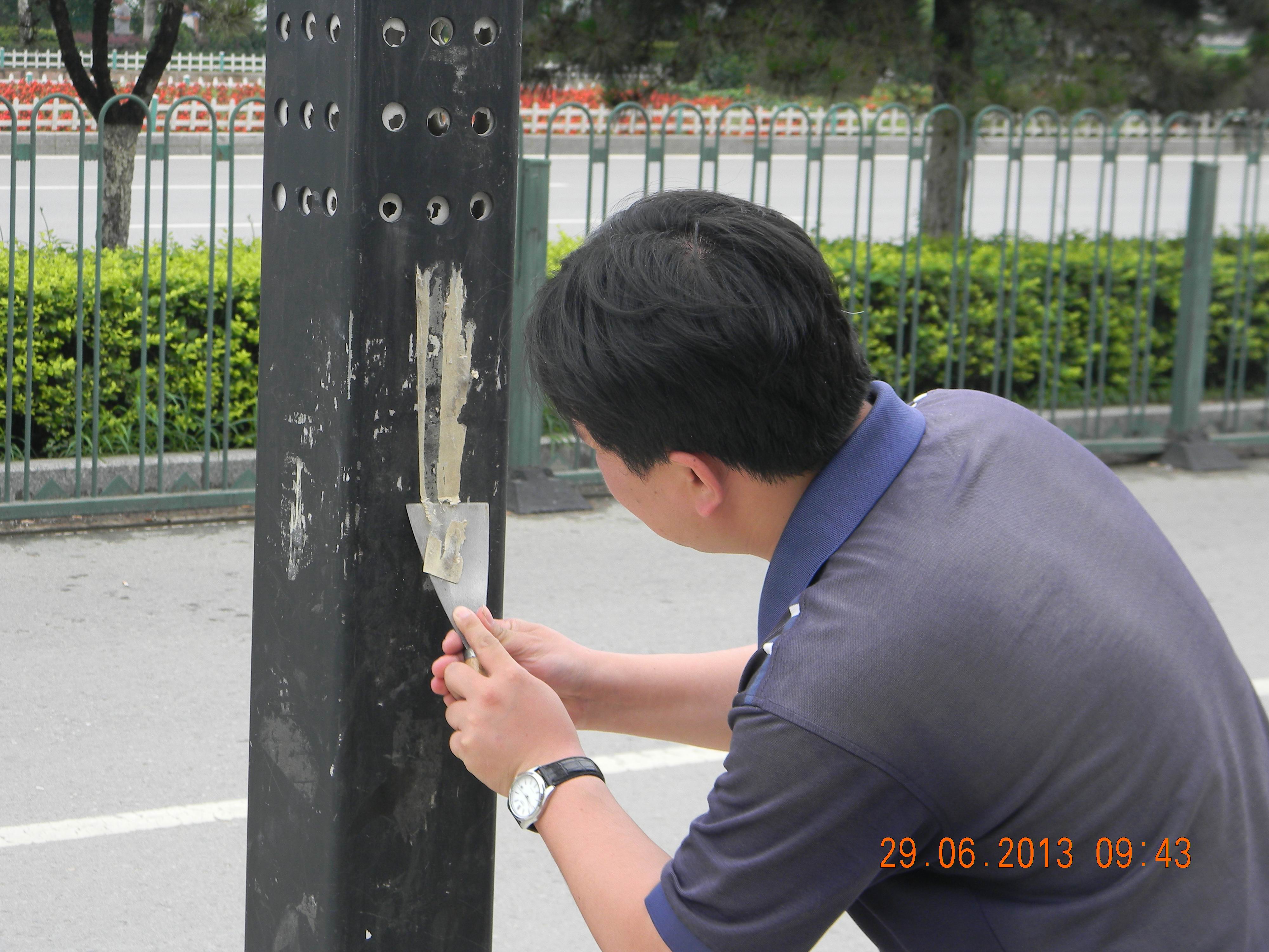 在秦皇岛市委市政府部署和学校统一安排下,2013年6月29日上午,学院组织师生党员和入党积极分子30人参加“我为港城、为学校添美丽”主题义务劳动。学生处副处长宋文华作动员讲讲话,学生处徐美玲老师随队参加义务劳动。我院本次义务劳动的任务是清扫河北大街路北侧一段辅道、人行道,捡拾白色垃圾,清洁公交亭、路灯灯杆,清除违规张贴。在党委组织委员王亦明、第二党支部副书记董硕玲带领下,大家劳动热情高涨,不怕脏不怕累,圆满完成劳动任务,尽己所能为港城增添了美丽。