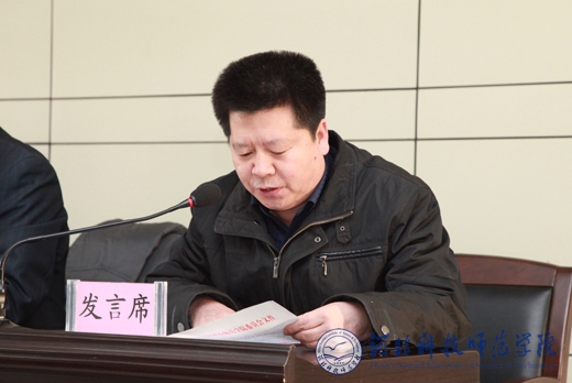 副校长张福喜在会上传达了省委宣传部、省委教育工委、省教育厅关于大学生思想政治教育工作测评体系自测自评及检查工作的相关文件精神。学生处处长冯瑞银宣读了我校大学生思想政治教育工作测评体系自测自评工作实施方案,对我校测评工作进行了安排部署。