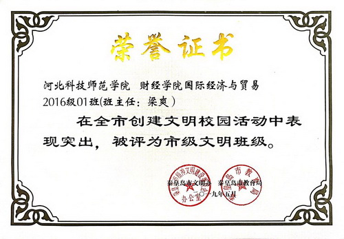 图为荣誉证书