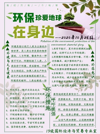2020年10月26日,国际经济与贸易专业2019级团支部组织团员青年进行校园环保宣传。