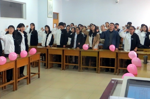 精彩的班级开场视频播放之后,团日活动正式开始。全体师生起立齐唱团歌《光荣啊,中共共青团》。朝气蓬勃的歌声彰显了全体团员积极向上的青春力量。活动中,播放了团干部精心制作的幻灯片,向大家展示了发生在校园内外的种种不文明现象,引发大家的深入思考和自我反思。主持人适时重温了“八礼四仪”,重温了经典的文明典故和文明格言。全体团员集体宣誓,表示要从我做起,从本职做起,从身边做起,从小事做起,做文明使者,创文明校园。本次团日以全体同学在逸夫教学楼清洁教室电器开关专项志愿活动圆满结束。(编审:李宝文)