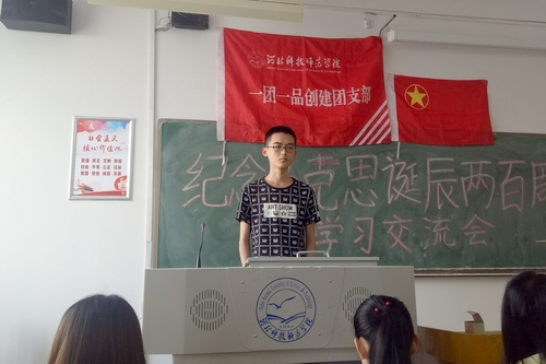 2018年5月18日下午,国际经济与贸易专业160102团支部在逸夫楼A407教室举办团日活动,纪念马克思诞辰200周年。57名同学参加了本次团日活动。