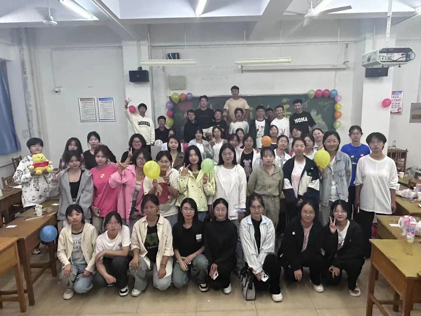 晚会现场布置得温馨而喜庆,彩色气球与精彩的板报交相辉映,营造出浓厚的节日氛围。中秋晚会在辅导员老师为24 级财务管理新生送上祝福以及确立新学期新目标的讲话中正式开场。晚会上,新生们各展风采,歌声悠扬,传递着青春的活力与憧憬;舞蹈灵动,绽放出蓬勃朝气。互动环节的三个游戏更是将晚会的气氛推向了高潮。最后,全体同学合唱并进行大合照,为晚会画上了圆满的句号。