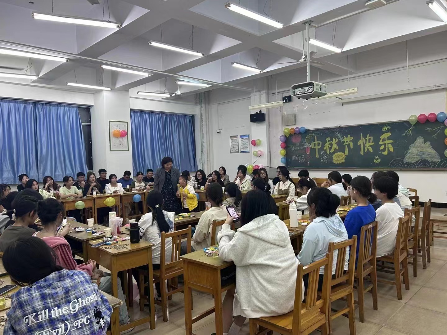 月满中秋,情满校园。2024 年 9 月 16 日晚,在辅导员老师的主持下, 24 级财务管理的新生们齐聚一堂,共同欢庆这个象征团圆的中秋佳节。