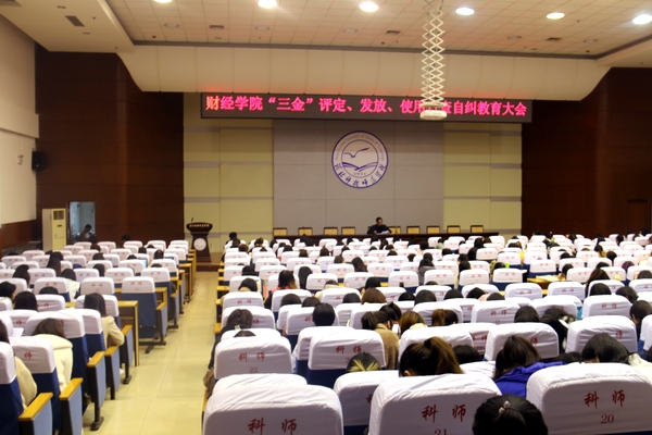 2019年11月6日,学院在学术报告厅召开2016级本科学生国家三金评定发放使用自查自纠教育大会。学院党委副书记、副院长李宝文重申学生处关于国家三金工作四条禁令,要求全体师生遵守国家三金工作要求,维护学生权益。2019级本科学生近500人与会。