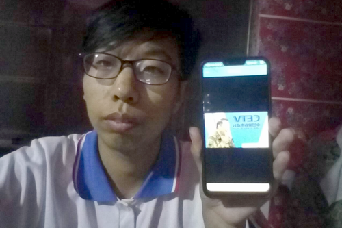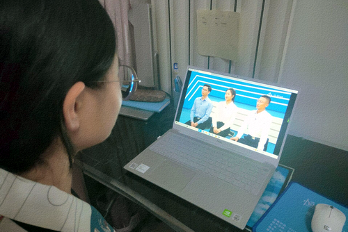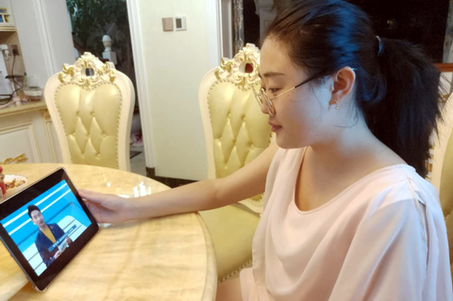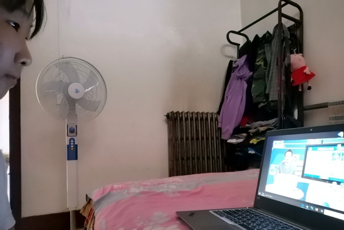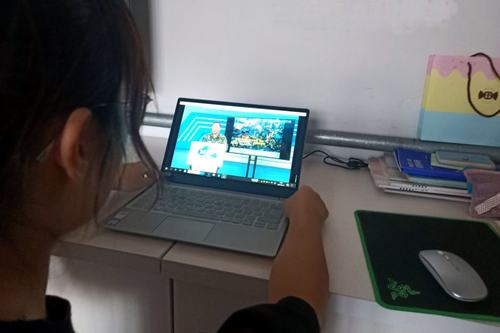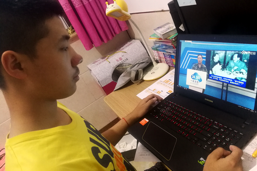 图为部分师生观看直播