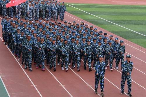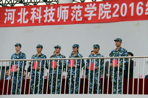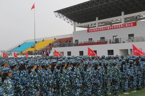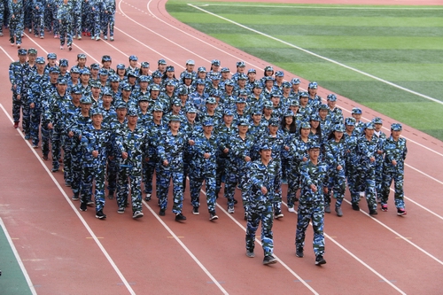 2016年10月16日,校区2016级新生军训汇演大会运动场上隆重举行。受训新生列成整齐的方阵,伴随着雄壮激昂的乐曲,迈着矫健的步伐依次通过大会主席台接受检阅。