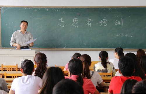 2015年秦皇岛马拉松赛暨全国马拉松锦标赛将于5月31日隆重举行。届时,学院有近500名学生为本届赛事提供志愿服务。为了帮助同学们顺利完成志愿服务,根据学生处要求,学工办于2015年5月27日中午对志愿者各级组长共45人进行培训。培训由学工办主任陈有为主持。
