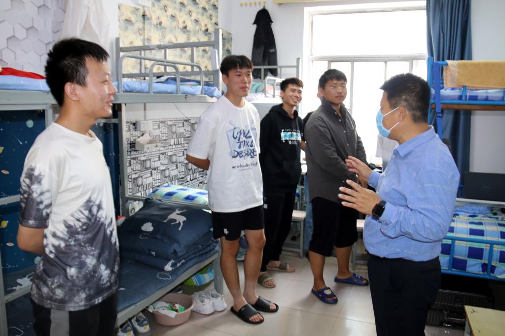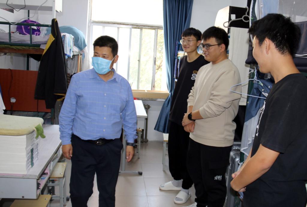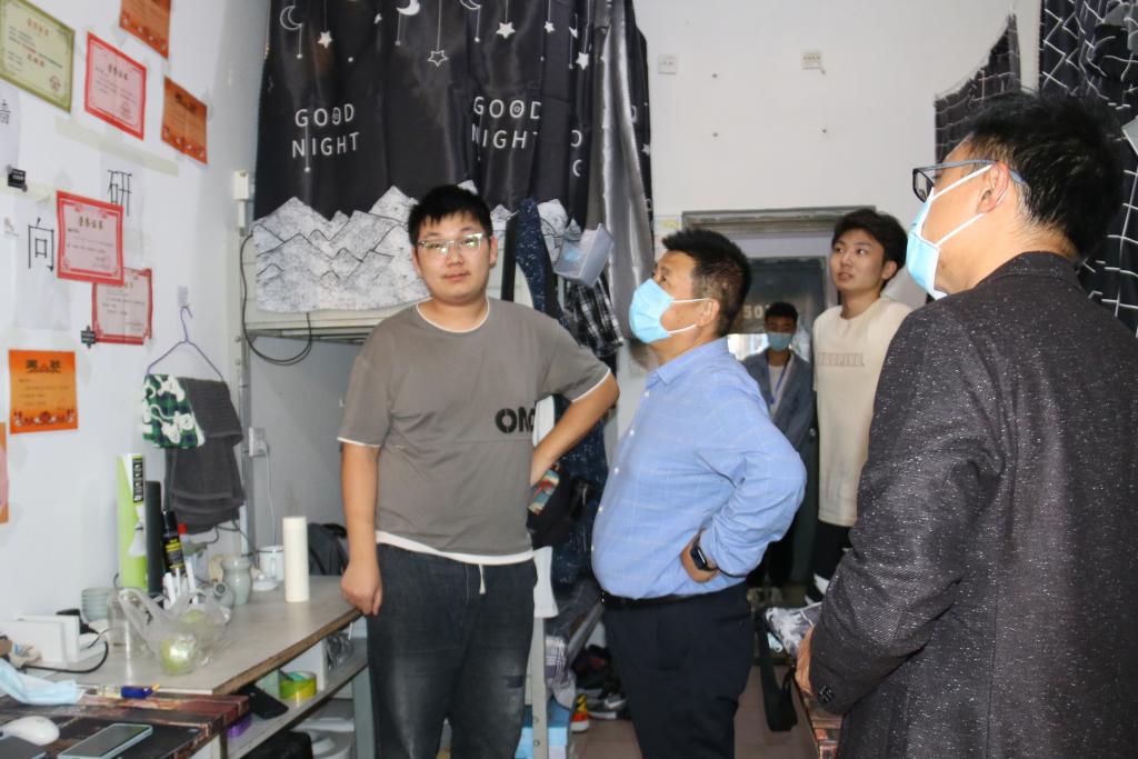 2022年9月28日下午,学院党委副书记、副院长王志安带领辅导员班主任和学生自律委员会干部共17人,分5组对学生宿舍进行卫生安全大检查。