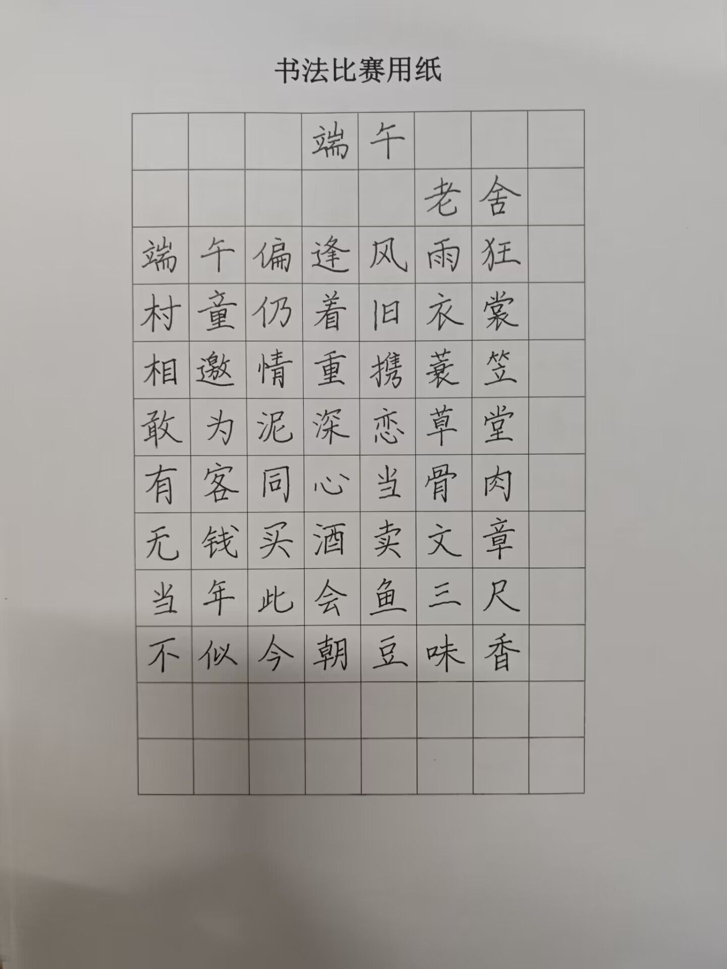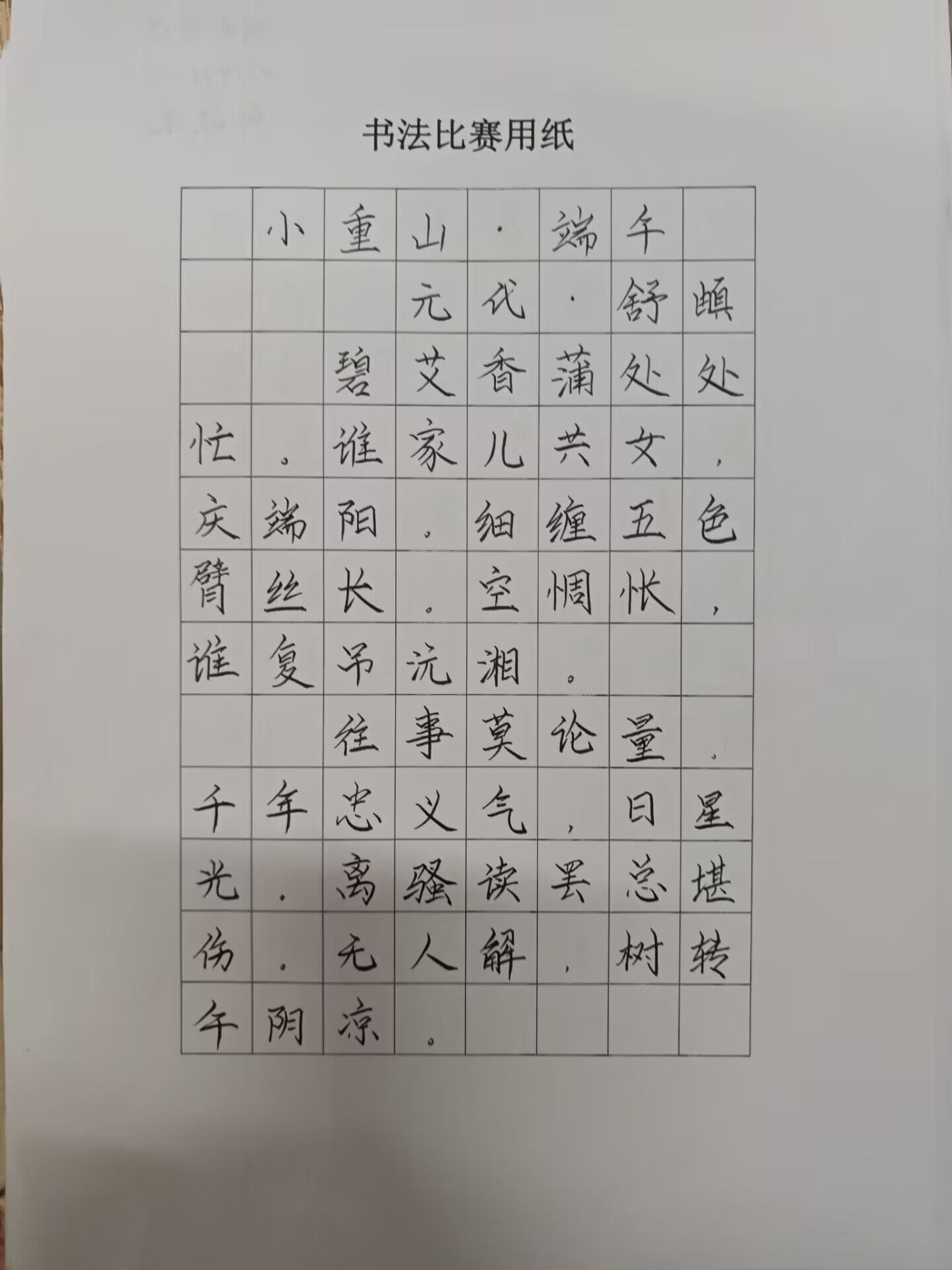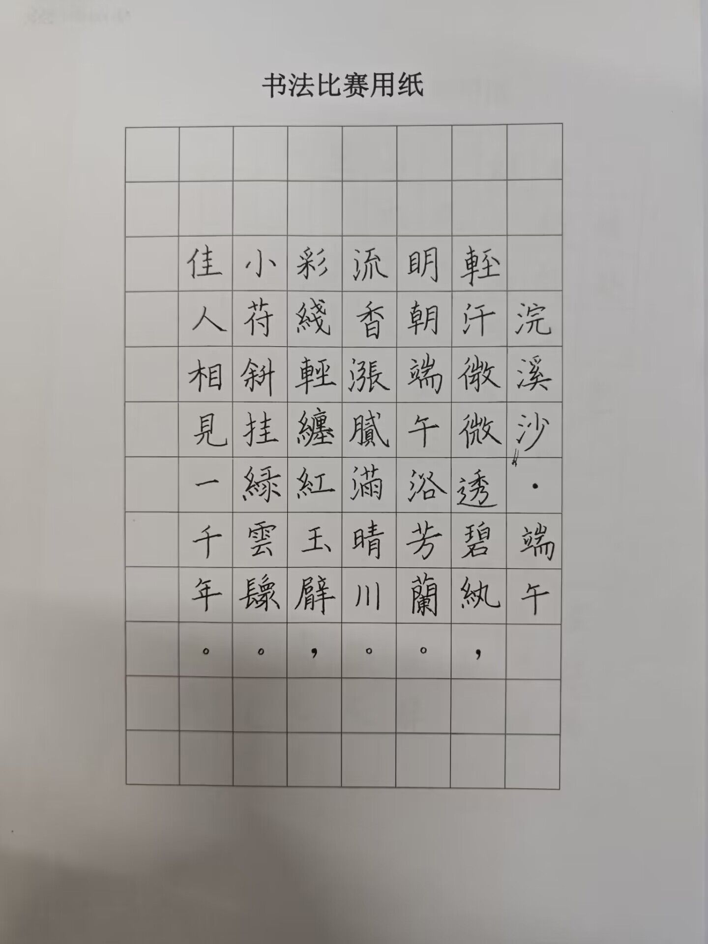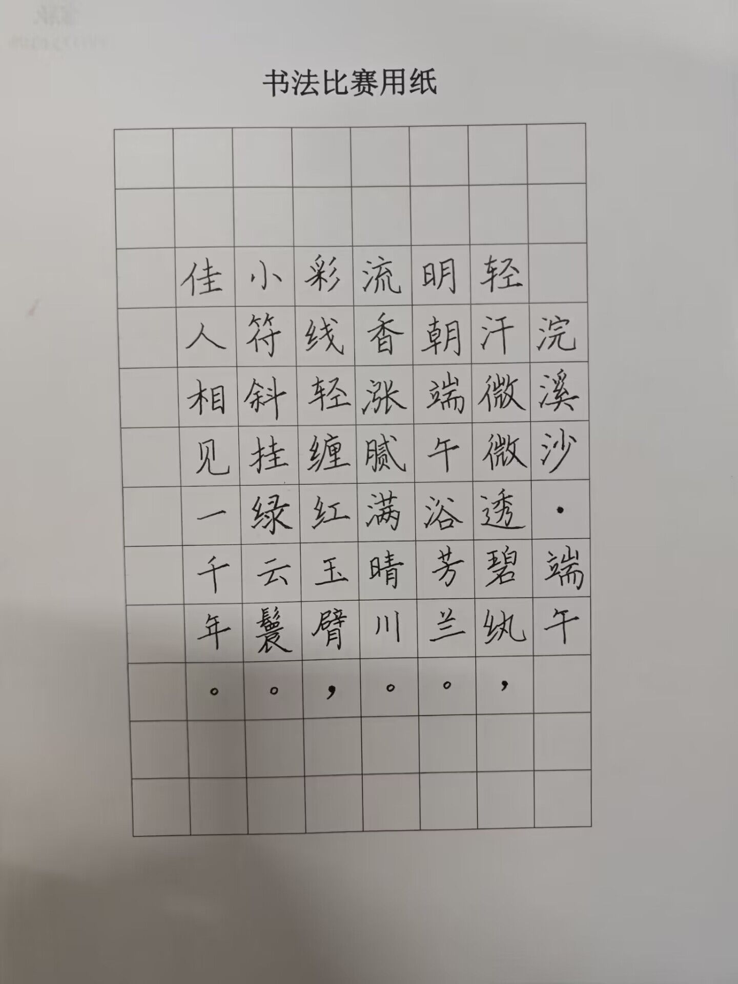 读书读世界,写字写人生。正随端午节到来之际,金沙检测线路js95第二课堂学习部于2023年6月17日—6月20日举办了“搴芳之行,以笔为名”硬笔书法比赛活动,让同学们传承好中华文化,享受练字的时光,过一个有意义的端午节。