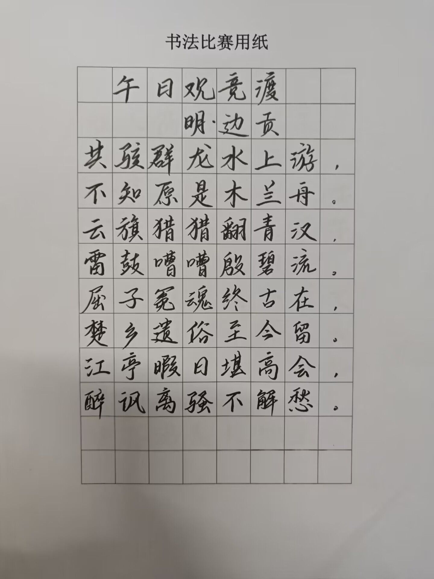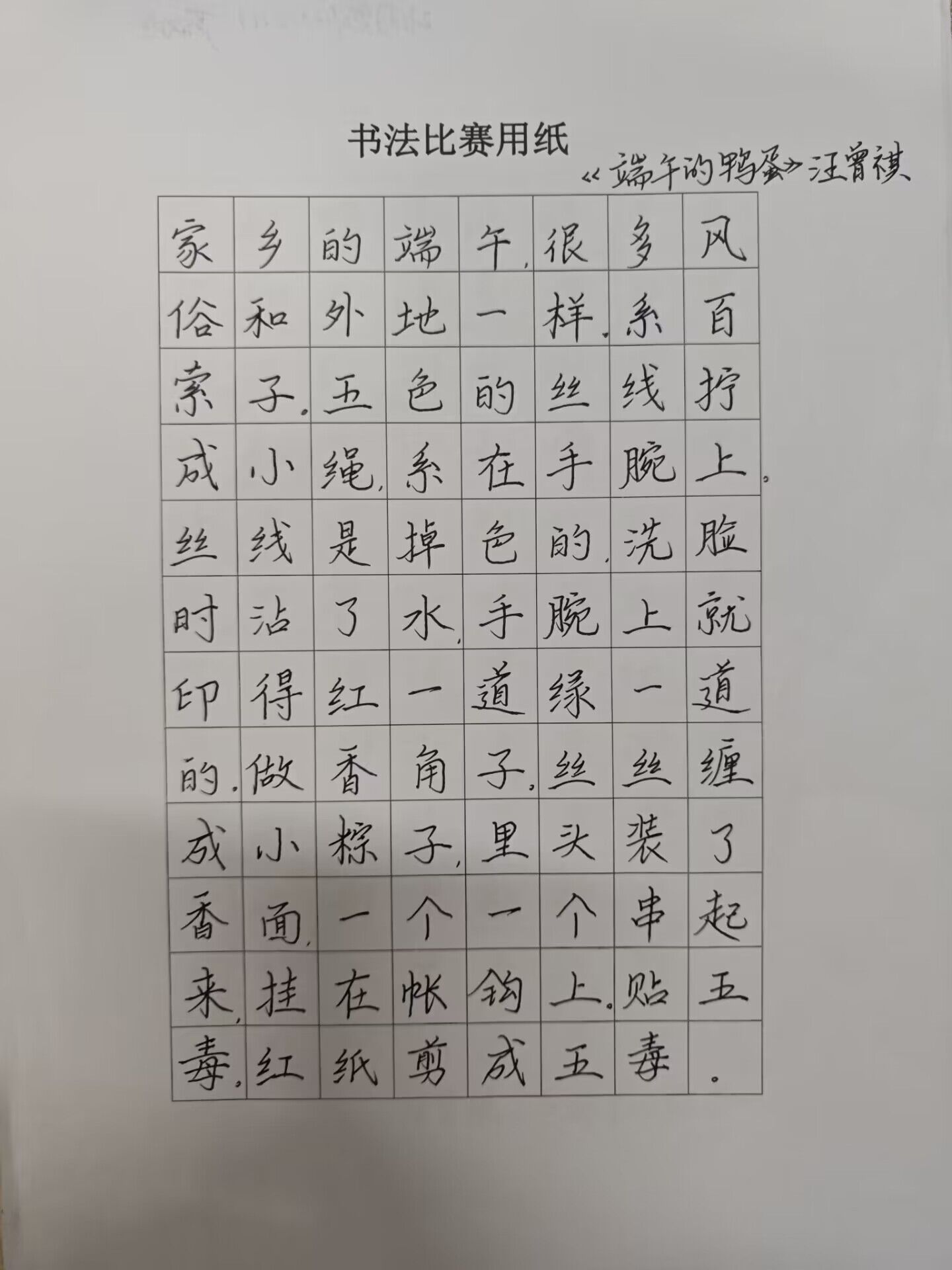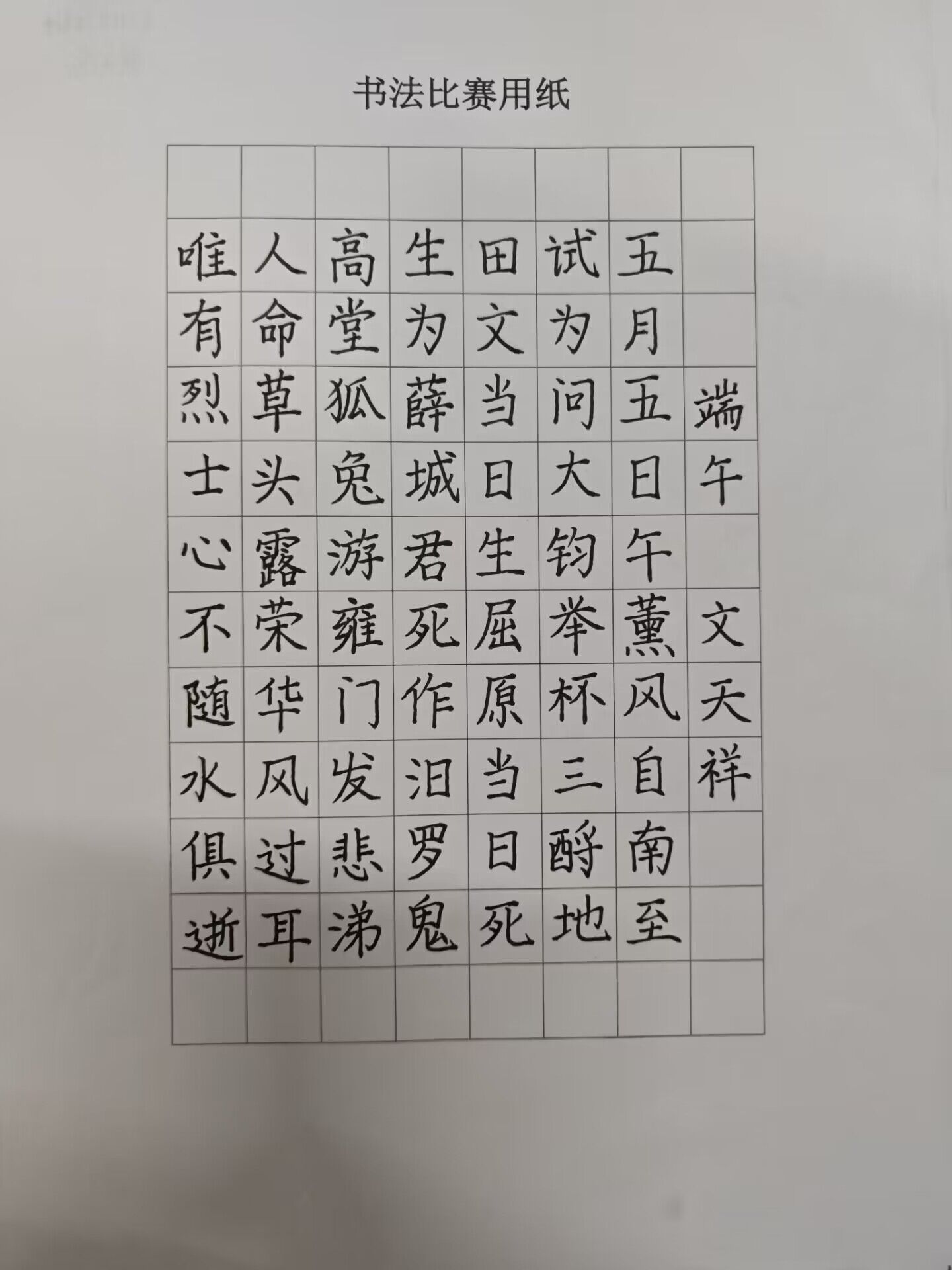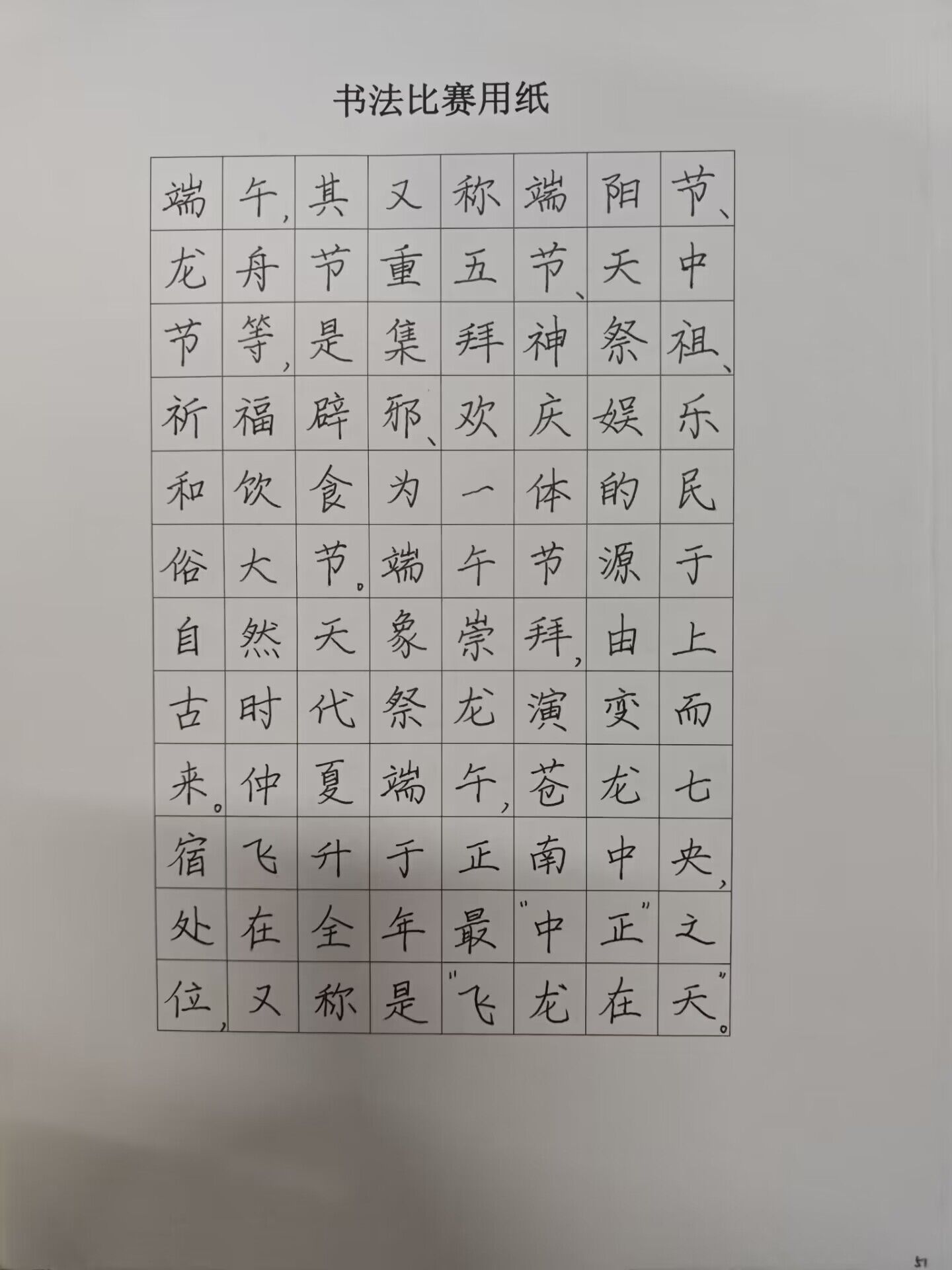 读书读世界,写字写人生。正随端午节到来之际,金沙检测线路js95第二课堂学习部于2023年6月17日—6月20日举办了“搴芳之行,以笔为名”硬笔书法比赛活动,让同学们传承好中华文化,享受练字的时光,过一个有意义的端午节。