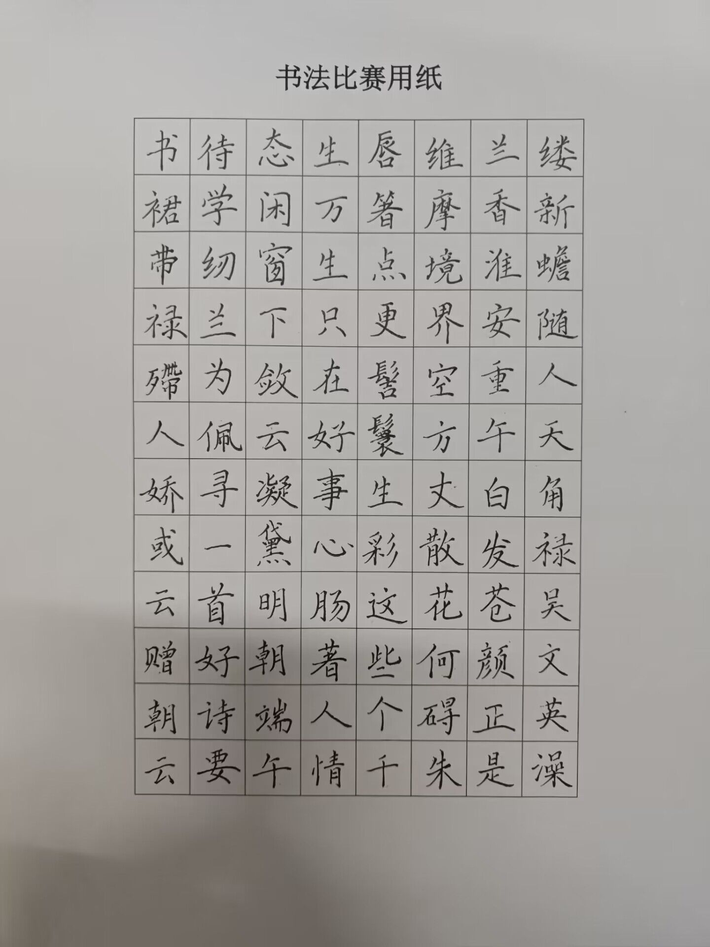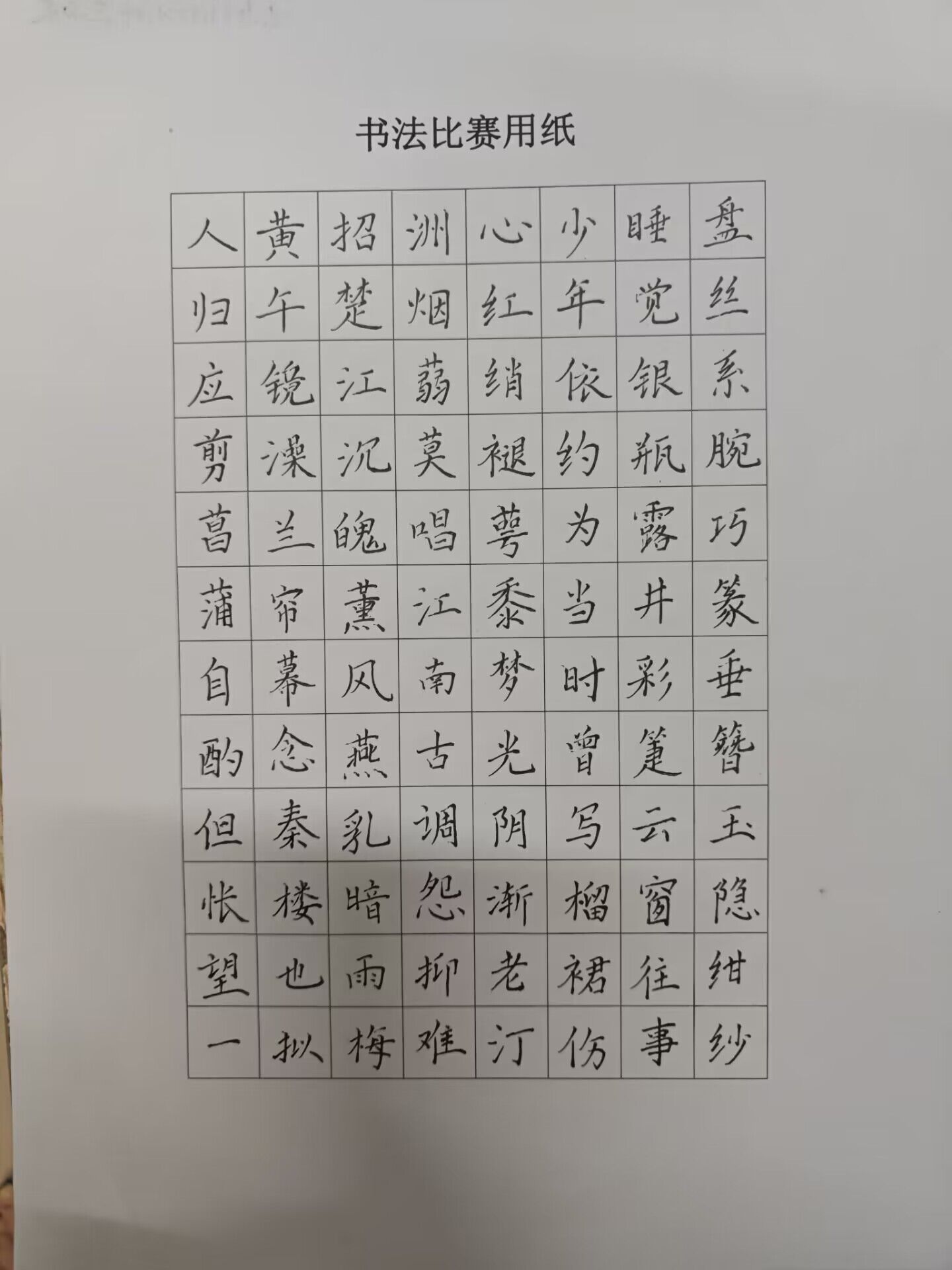 写字,是一件小事,写好,却是一件大事。本次活动,提高了同学们的审美素质,培养了同学们认识美、发现美、创造美的能力,促进了人文和谐。在此次活动中,同学们积极提交作品,最终,经过工作人员严谨的评比,确定了获奖人选,分别是一等奖芦欣冉,二等奖金颖、梁天蕊,三等奖范雨薇、李冰钰、刘欣悦,以及入围奖众人。