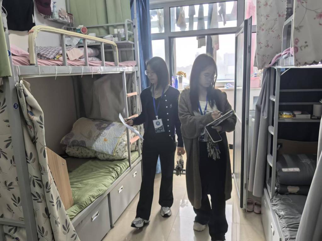 2024年10月18日上午,为进一步加强学生宿舍管理,营造安全、舒适、整洁的住宿环境,学工办辅导员们带领学生干部组织开展宿舍检查活动。