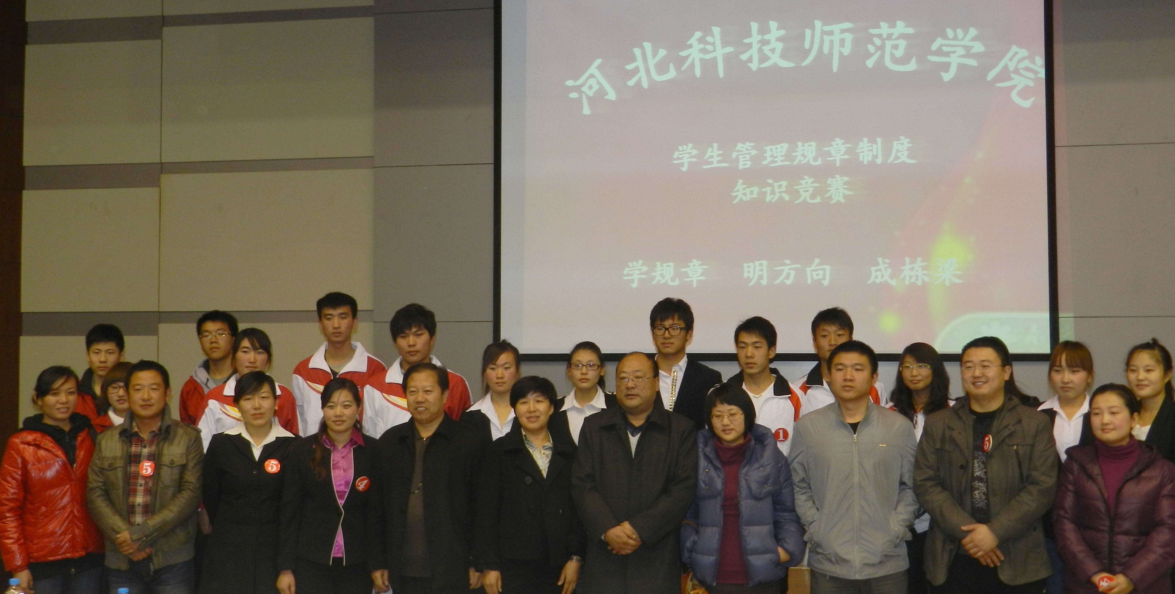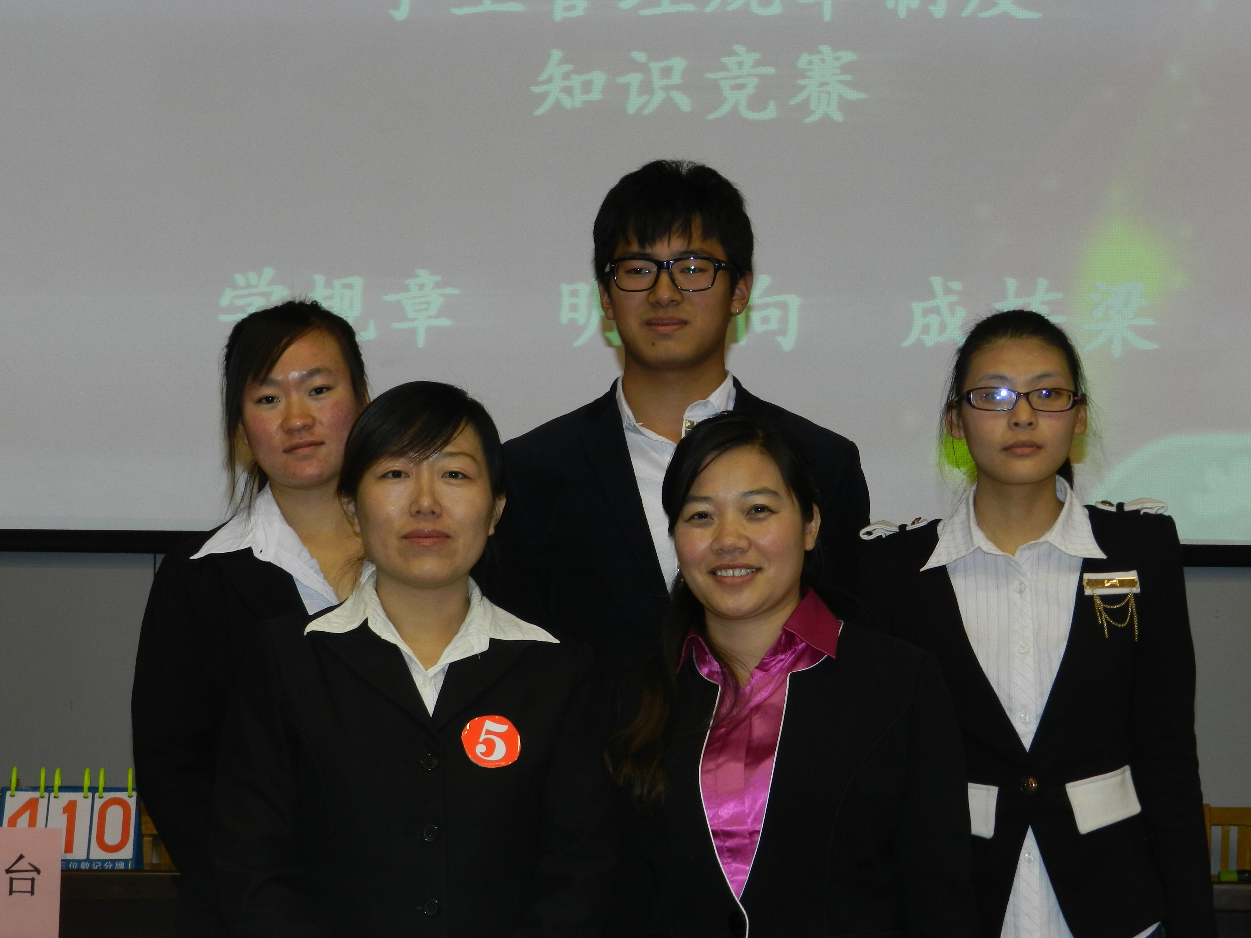 2012年11月30日下午,由学生处主办的学生管理规章制度知识竞赛秦皇岛校区比赛在学术报告厅隆重举行,本次比赛的主题是“学规章、明方向、成栋梁”。5支代表队参加了本次比赛,我院代表队获得总成绩第一名。
