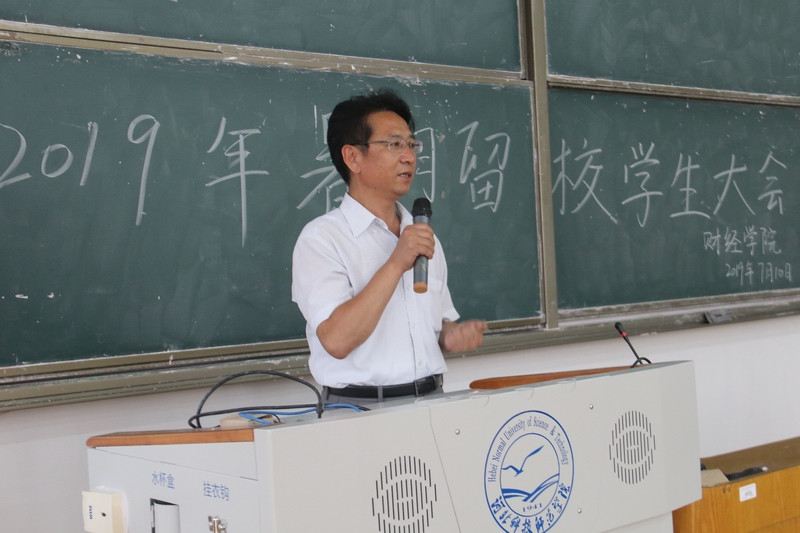 2019年7月10日下午,学院在B104教室召开暑期留校住宿学生大会,200多名申请暑期留校住宿的学生参加大会。学院党委副书记、副院长李宝文出席大会并讲话。
