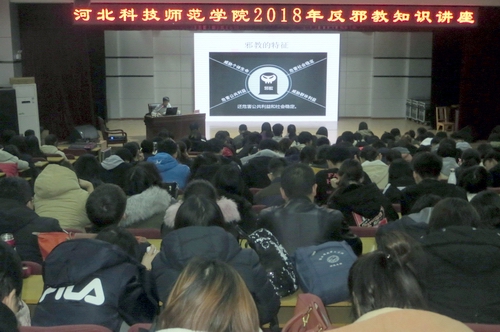 2018年11月23日,我校秦皇岛校区在多功能厅举办了反邪教知识讲座。包括我院40余名反邪教志愿者、反邪教宣传员、辅导员(班主任)和学生代表在内的校区近300人聆听了讲座。
