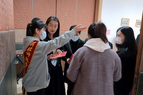 在志愿服务现场,全体志愿者按要求分为4组,分别负责签到和量测体温、引导观众就坐、引导获奖选手上下场、担当颁奖礼仪。通过两次现场彩排,志愿者们服从指挥配合工作,顺利熟悉了服务内容和流程,很快投入到角色之中。在正式志愿服务中,全体志愿者情绪饱满,精神集中,彬彬有礼,服务热情,条不紊,体现了大学生良好的精神风貌和综合素养。