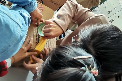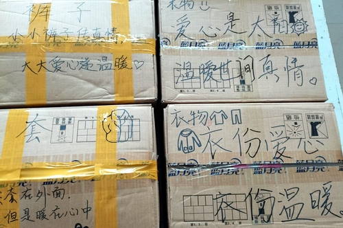 接着,志愿者根据衣物类别的进行了分类整理打包并精心设计了相应的暖心话语。他们在外套的包装箱上写上“虽然套在外面,但是暖在心中”;在毛衣包装箱上写上“温暖的不是冬天,是有毛衣的每个你!”