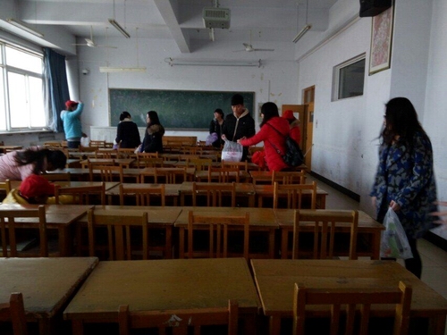 2015年12月26日下午,电商15级组织同学和学院青年志愿者协会干事一起在实验楼前集合,参加清理教室的志愿活动。