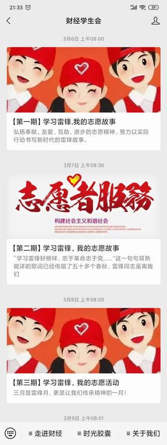 活动分为两项内容,其一是通过新媒体交互平台转发雷锋语录、日记、故事等,其二是通过视频、文字等形式讲述自己的志愿故事以及在志愿活动过程的心得体会。同学们踊跃参与了本次活动。两周之内,新媒体平台转发雷锋语录、日记、故事达1623次;收集到包括视频、文字在内的作品158份,其中21份优秀作品在金沙检测线路js95学生会微信群公众号予以发布。(编审:王志安)