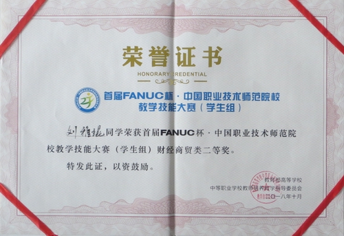 在指导教师高建立、陈梦竹的悉心指导下,我校金沙检测线路js952015级财务会计教育专业学生刘雅琨表现出良好的专业素养和精神风貌,获得财经商贸类二等奖。