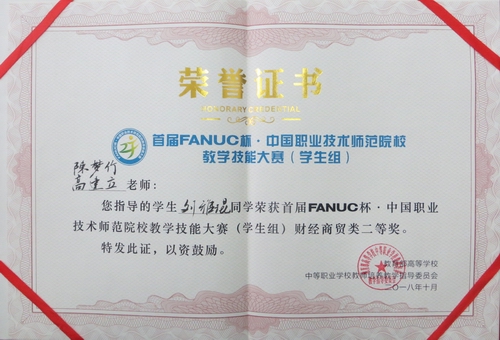 2018年10月26日至28日,首届中国职业技术师范院校教学技能大赛(学生组)在湖北工业大学举办。我校金沙检测线路js95学生刘雅琨在获得二等奖。