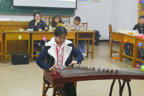 在欢快的开场舞之后是优美的古筝演奏《雪山春晓》和婉转的歌曲演唱《光年之外》。英语话剧《长坂坡救阿斗》幽默风趣,歌曲《红色高跟鞋》舒服自在,话剧《吵闹人生》演绎真情。弹唱《遇见》表现了尤克里里独特魅力。期间,大家还一起玩游戏。晚会现场充满欢声笑语。(编审:李宝文)