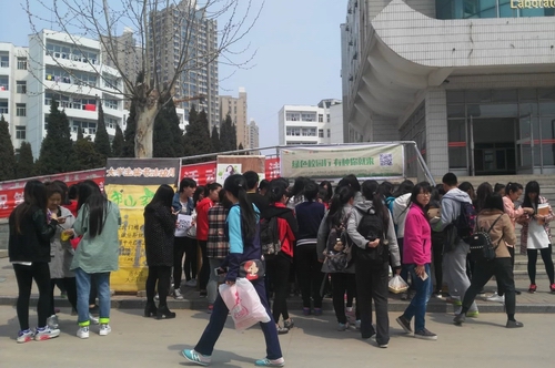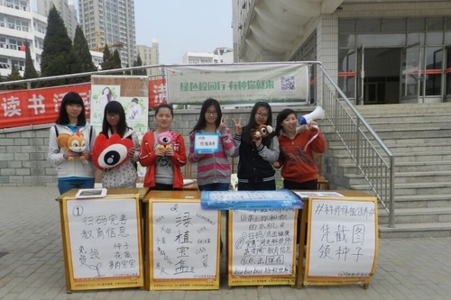 为了响应共青团中央学校部、中国绿化基金会、微博校园共同主办的第六届全国大学生绿植领养活动,2016年4月15日、16日,微博协会主办和新媒体协会联合举办的河北科技师范学院大学生绿植领养活动在实验楼下火热举行。
