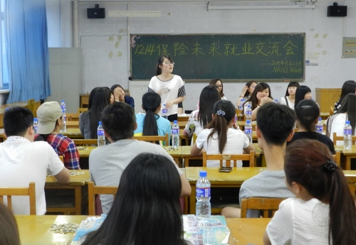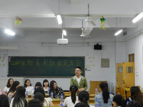 为使同学们对保险专业有一个更加深入的认识,2015年5月25日晚,学院学生保险俱乐部邀请保险实务专业2015届应届毕业生在逸夫楼A709召开交流会。交流会由保险俱乐部负责人吴春梅主持。