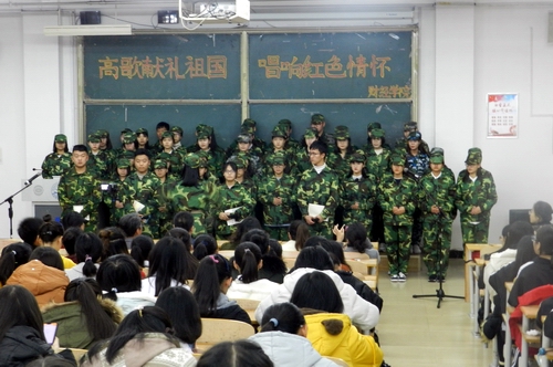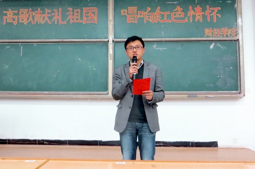 2018年11月23日晚,学院在B206教室举办了以“高歌献礼祖国,唱响红色情怀”为主题的2018级学生红歌合唱比赛。学院党委副书记、副院长李宝文携辅导员班主任出席比赛并担任评委。200余名学生现场观看比赛。