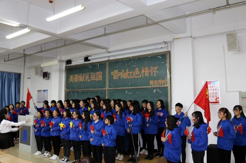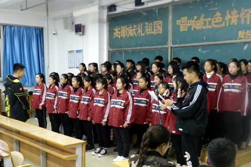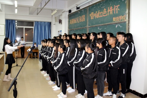 比赛中,2018级7个专业班级的合唱队伍依次登台,倾情演唱。各支队伍准备充分,着装整齐,精神饱满,充满青春气息。每支参赛队伍合唱两首歌曲,一首是必唱歌曲《光荣啊,中国共青团》,另一首是自选红色经典歌曲。《团结就是力量》、《游击队歌》、《歌唱祖国》、《七子之歌》、……一首首耳熟能详的歌曲在教室回响。现场歌声如潮,掌声阵阵,气氛热烈。