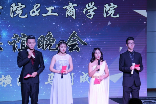 2017年12月8日晚,我院与工商管理学院在多功能厅举办了以“财华横溢,马到成‘工’”为主题的联谊晚会。校学生组织负责人和各院系学生会负责人出席晚会。双方学院200余名的学生参加晚会。