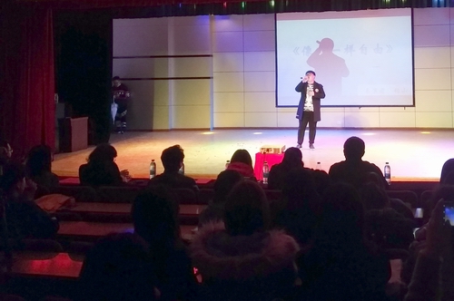决赛在学院2017年度“金唱盘”冠军张山同学的《像梦一样自由》歌声中圆满落幕。(编审:李宝文)