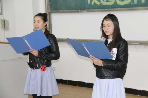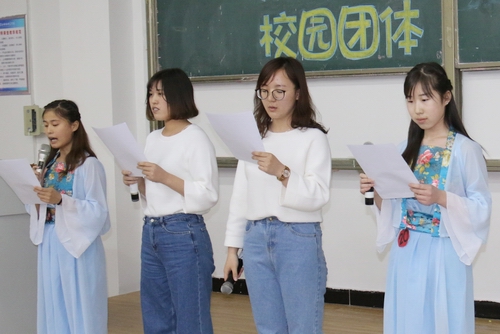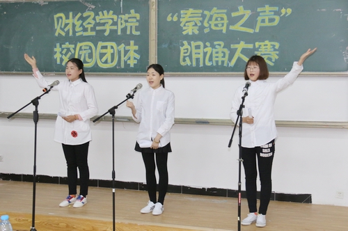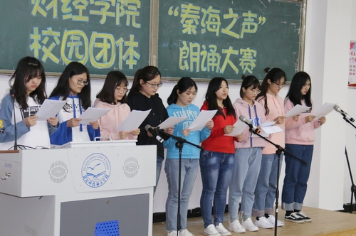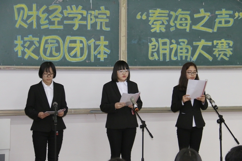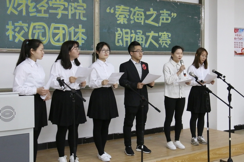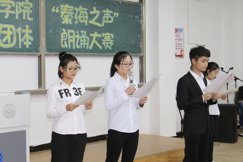 为加强校园文化建设,丰富校园文化生活,全面展现我院校园文化建设成果和学生文化艺术才华,同时为校首届秦海之声特色团体朗诵大赛选拔人才,2018年4月8日,学院在逸夫楼B206举办校园团体朗诵比赛。校金话筒冠军杜士杰、校英文电台台长、校金话筒十佳侯天奇、尹子豪、米丽香、张玉婵五位同学应邀担任评委。