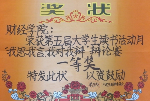 本次活动中,六个院系各派两人组成六支队伍。我院派出国贸专业2016级学生侯天奇作为主辩手,国金2015级学生卞雨晨作为协辩手,就“诸葛亮该不该取代阿斗做皇帝”为辩题和兄弟院系选胜展开辩论。选手们口若悬河,妙语连珠,反映出扎实的知识积累和雄辩的思维技巧,充分展示了选手的风采。整场活动气氛热烈,大家自始至终掌声不断,充分感受到古典文化带来的精彩。最终,我院选胜技高一筹,获得此次辩论赛第一名。卞雨晨同学获得最佳协辩手称号。(编审:李宝文)