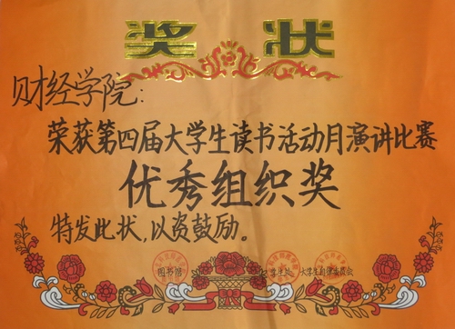 2016年4月23日晚,第四届大学生读书月活动演讲比赛暨闭幕式在多功能厅圆满结束。我院学生曹菁菁获得主题演讲一等奖,王中天获得即兴演讲优秀奖。我院学院获得演讲比赛“优秀组织奖”荣誉称号。(编审:李宝文)